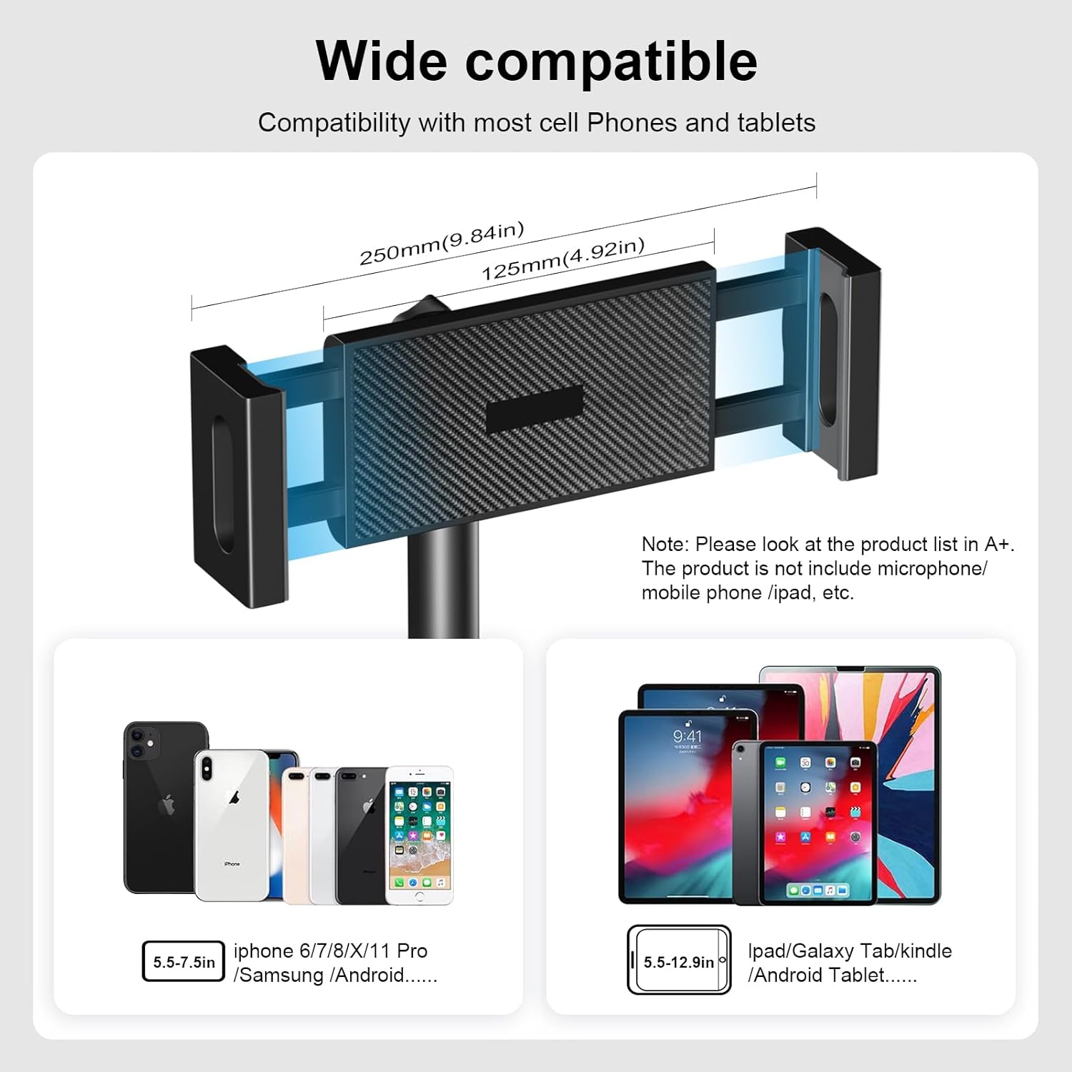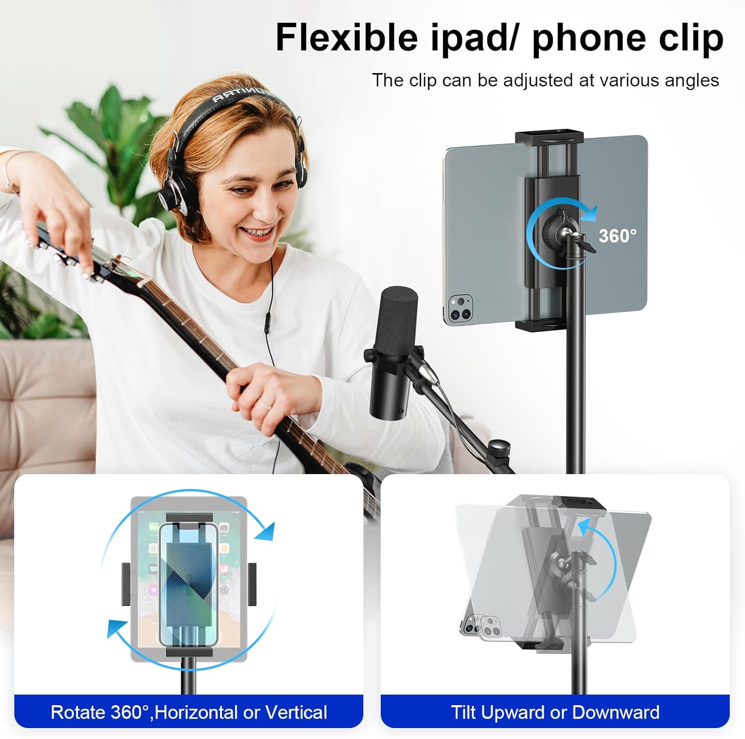 With an adjustable height range of 42-68 inches, this floor tablet mic stand tripod ensures that you can always find the perfect positioning for your microphone. Whether you’re recording vocals in the studio or performing live on stage, this stand has got you covered.